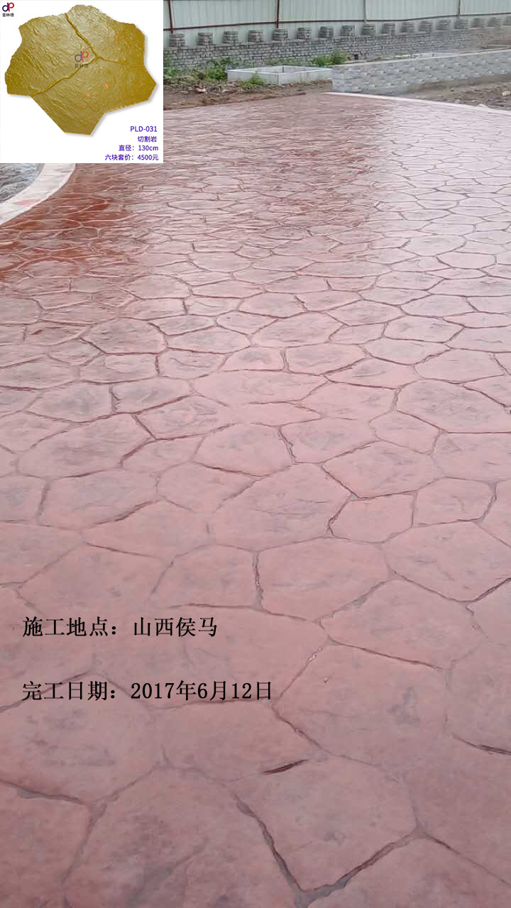 項目名稱:山西省侯馬市壓模壓花地坪工程 項目地址:山西省侯馬市 竣工時間:2017年06